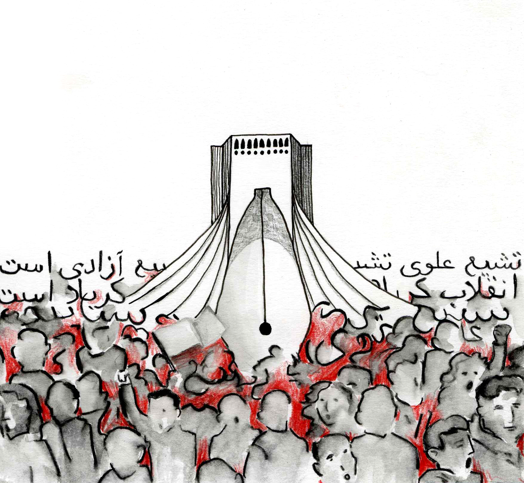 Cover illustration for a thesis on the influence of the essays written by Ali Shari'ati on the Iranian revolution in the late 1970's.